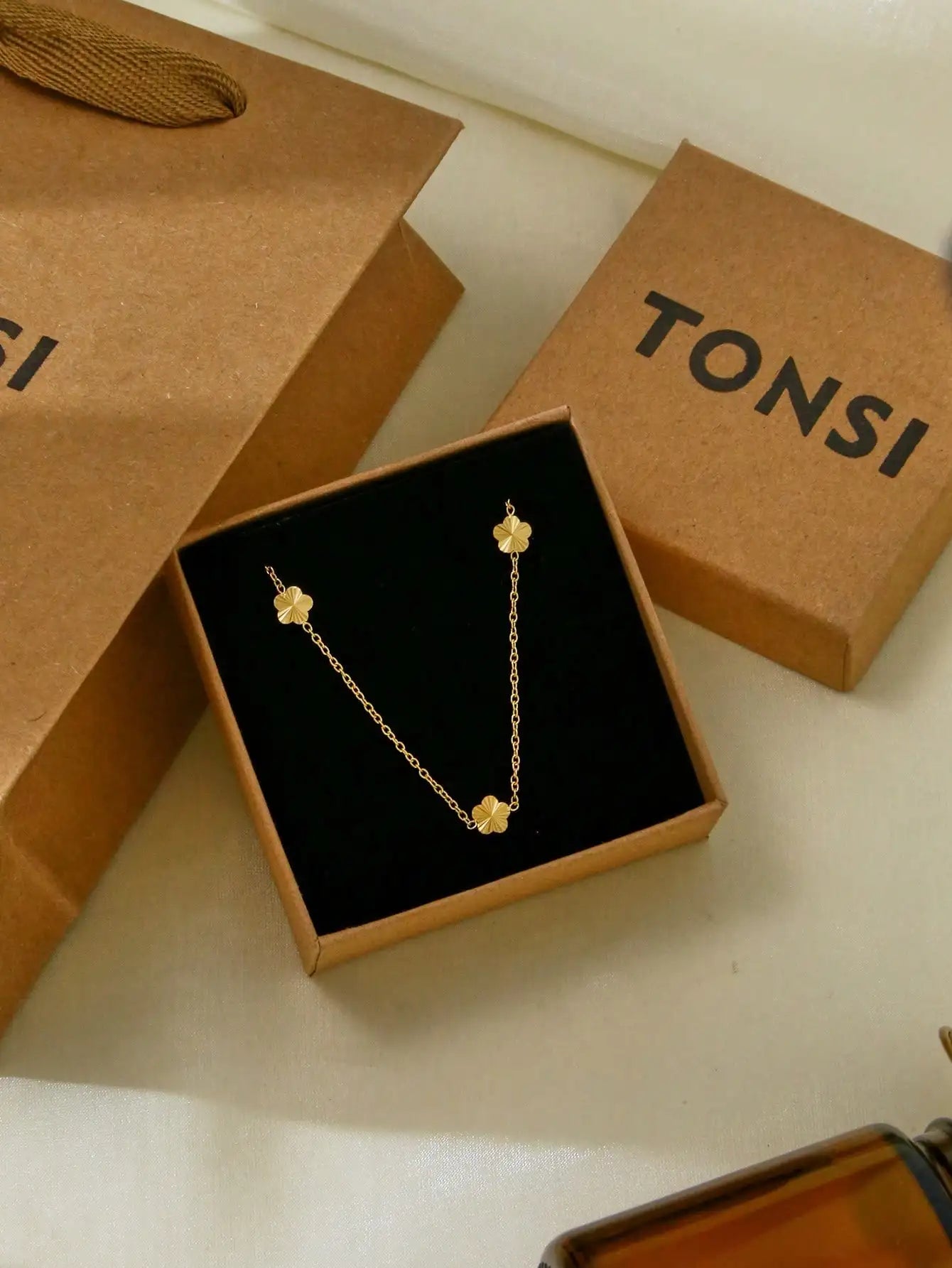 أضيفي لمسة من الرقي والأنوثة إلى إطلالتك مع هذا العقد الكلاسيكي بتصميم زهرة ذات خمس أوراق، مصنوع من ستانلس ستيل مطلي بالذهب عيار 18، ليجمع بين الأناقة والمتانة في قطعة واحدة خالدة.